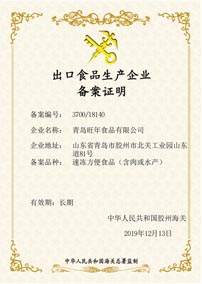 旺年堅持以食品安全作為發(fā)展的基石,除通過ISO9001、HACCP等體系認(rèn)證外,還成為業(yè)內(nèi)為數(shù)不多具備出口食品生產(chǎn)資質(zhì)的企業(yè)之一,產(chǎn)品出口美國、加拿大等多個國家和地區(qū)。